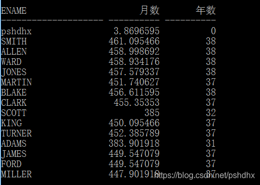 select ename,months_between(sysdate,hiredate) 月数,trunc(months_between(sysdate,hiredate)/12) 年数 from emp; |