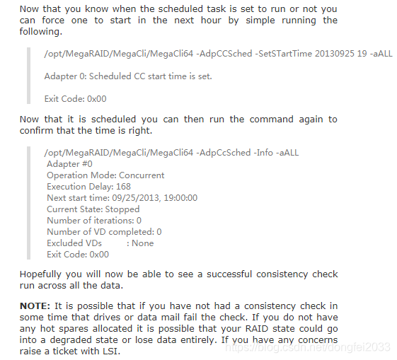 [root@kvm_100_67_159_143 ~]# /opt/MegaRAID/MegaCli/MegaCli64 -AdpCcSched -Info -aALL