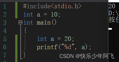 注意:在全局变量与局部变量名称相同的情况下,局部变量优先,且并不推荐将两者命名为一样。并且,不可以同时存在两个相同的全局变量或局部变量,否则程序会报错:重复定义。