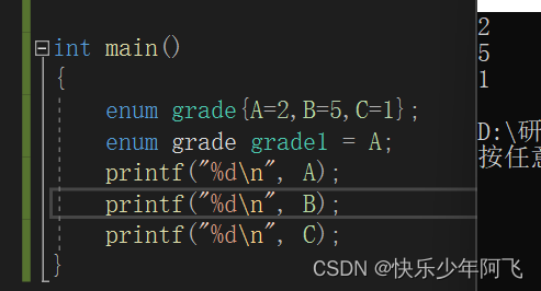 枚举常量,可以逐个列举的常量。枚举数据类型描述的是一组整型值的集合,需要用关键字enum来定义,格式为:enum 枚举类型的标识符{常量1(整型),常量2,...常量n};,枚举类型变量的定义格式为:enum 枚举类型的标识符 枚举型变量;。除非特别指定,一般情况下常量1的值为0,常量2的值为1,往后依次递增1。