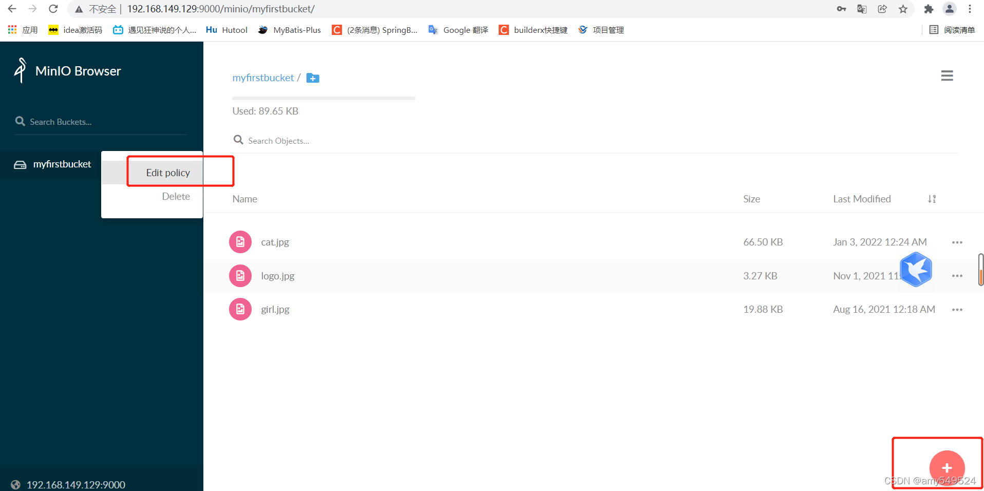 minio: endpoint: http://192.168.149.*:9000 accessKey: minioadmin secretKey: minioadmin bucketName: myfirstbucket