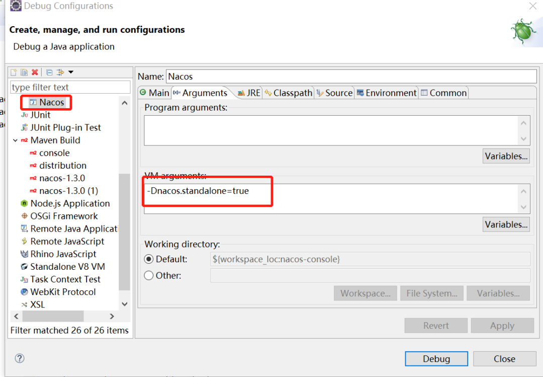 0x01:eclipse中配置单机启动Nacos