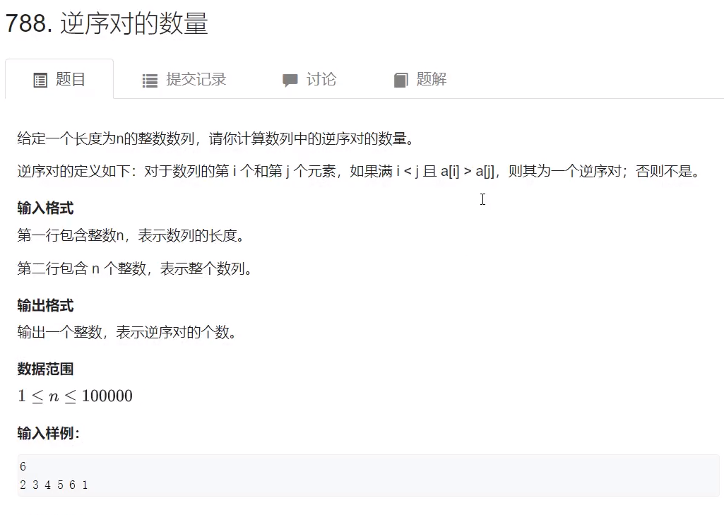 逆序对的数量: