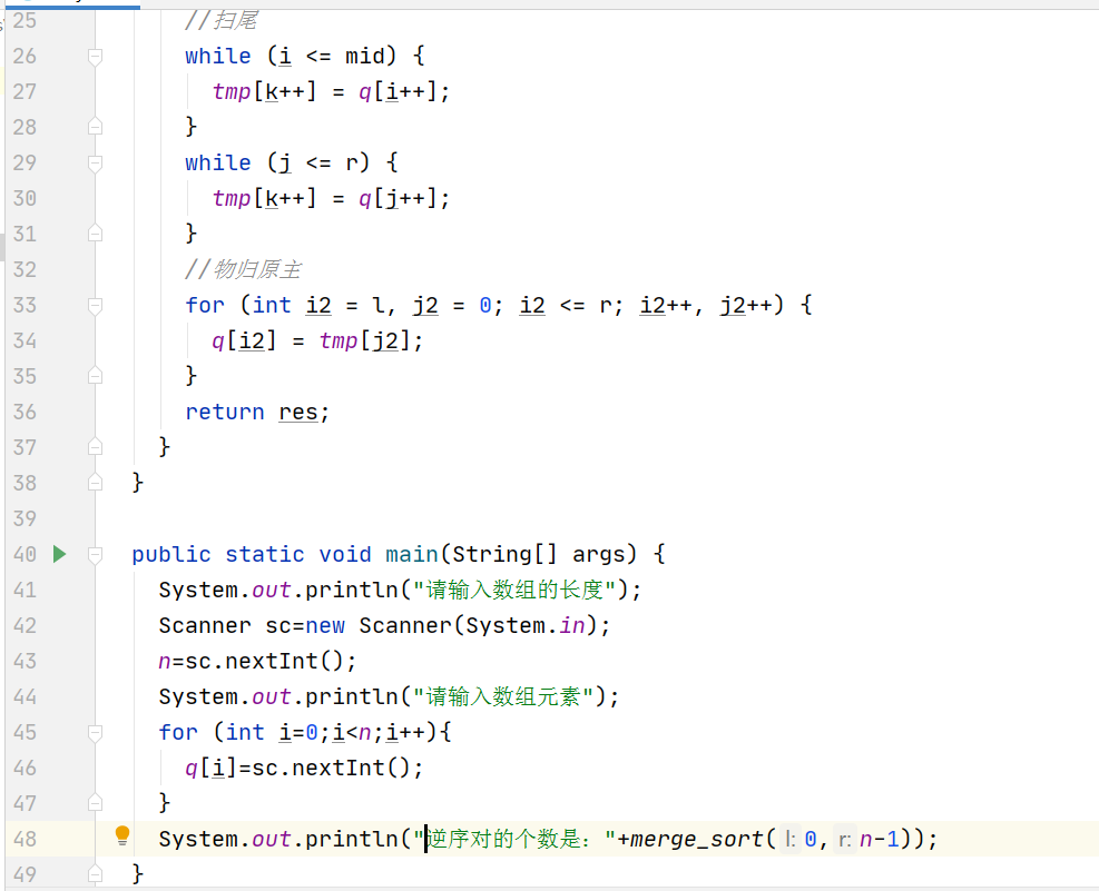 这题是我们用到归并排序的一个基本思想。