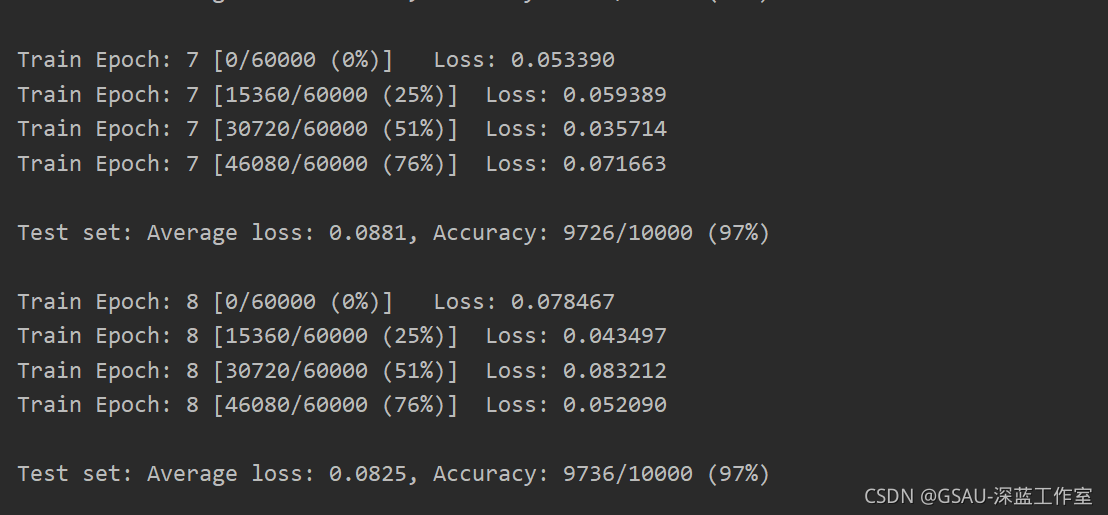 torch.save(model, 'MNIST.pth')运行结果展示: