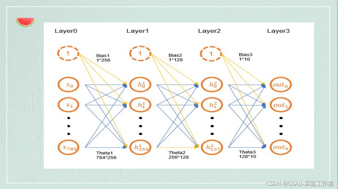 这里我们构建全连接神经网络,我们使用三个全连接(或线性)层进行前向传播。