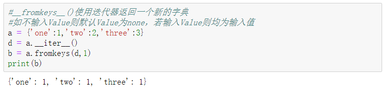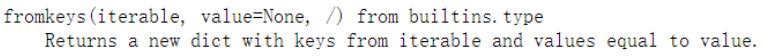 3.5 返回一个新字典,新字典的内容的值全都相同,值为的自己设定的值 __fromkeys__()