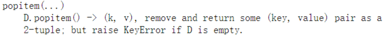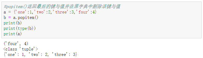 3.8 删除最后一组键值,返回值为最后一组键值popitem()