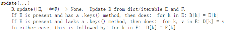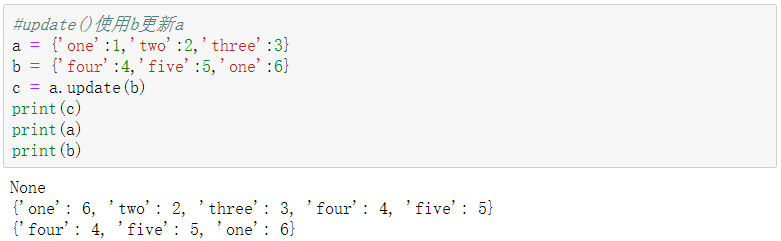 3.10 将新的字典放在老的字典中,如果key值相同,老字典中重复的key的value会被替代 update()