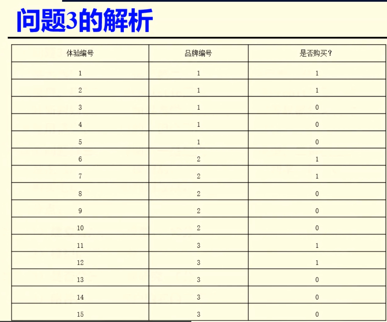 分三个品牌,分别分析每个数据是不是影响购买还是不购买:(是一个二分类问题购买时第一类,不购买是第二类)数据有两种,一种连续变量一种是分类变量,分25次各自研究与够不够买的关系即可
