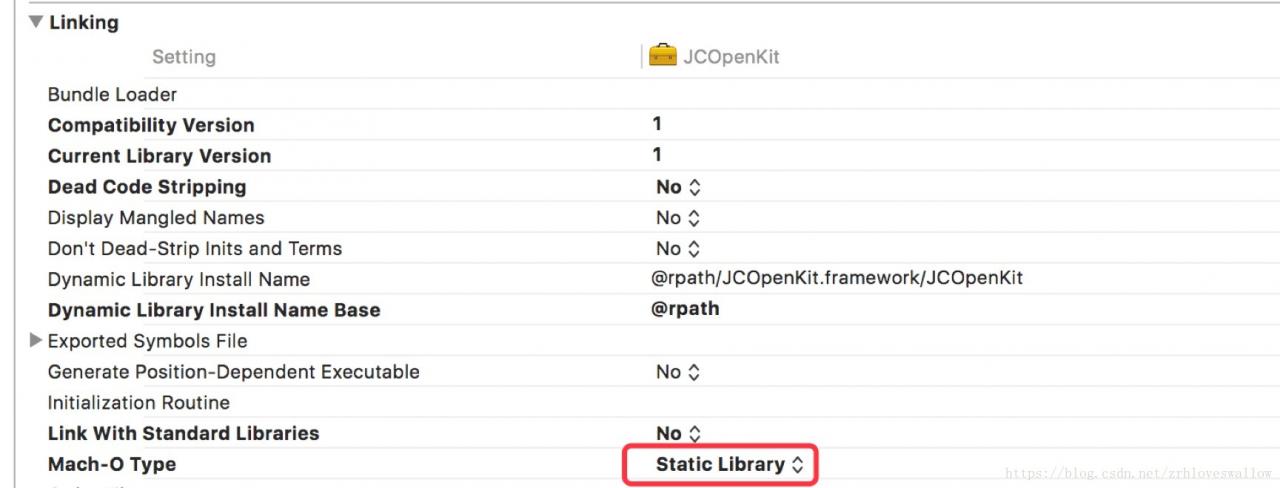 1、选择工程文件>target第一项>Build Setting>搜索linking,然后几个需要设置的选项都显现出来,首先将Mach-O Type设为Static Library,framework可以是动态库也可以是静态库,对于系统的framework是动态库,而用户制作的framework只能是静态库。