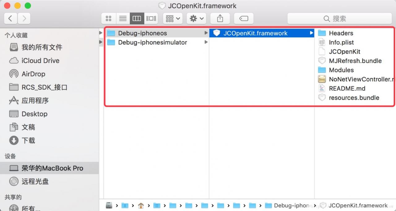 最后将被替换文件的JCOpenKit.framework就是最终的库