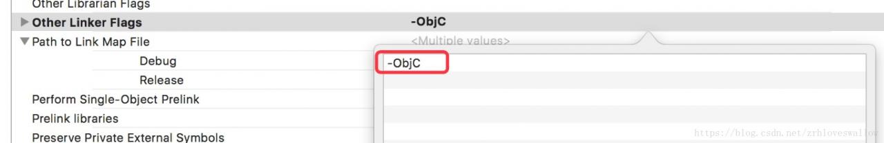 -ObjC:加了这个参数后,链接器就会把静态库中所有的Objective-C类和分类都加载到最后的可执行文件中