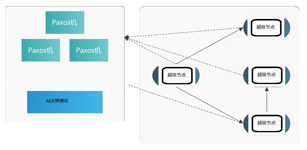此外,Trias在去中心化的签名确认方案的基础上,将一部分超级节点赋予了新的功能,被称为观察层,也可称之为共识确认层,观察层由多个Paxos状态机观察节点和一个AI决策模块组成。所有观察层节点始终保持在线,接受链上所有的提案信息。