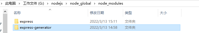 npm install express --save -g运行上面的命令后,会在相应的目录下生成两个文件夹