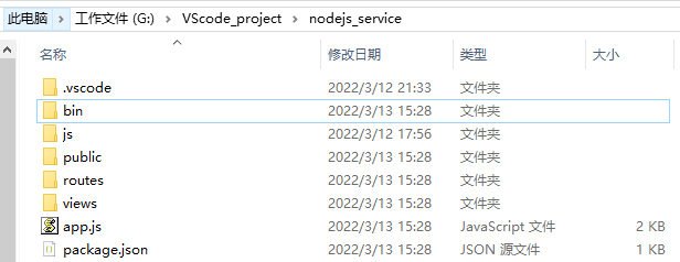 找到平时做项目的文件夹。或随意找一个地方,通过命令cd打开文件,或者在路径处cmd,我项目nodejs_service里的文件为: