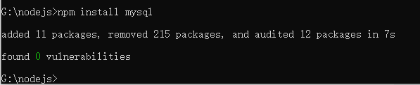 我们使用cmd进入nodejs目录里面进行安装mysql: