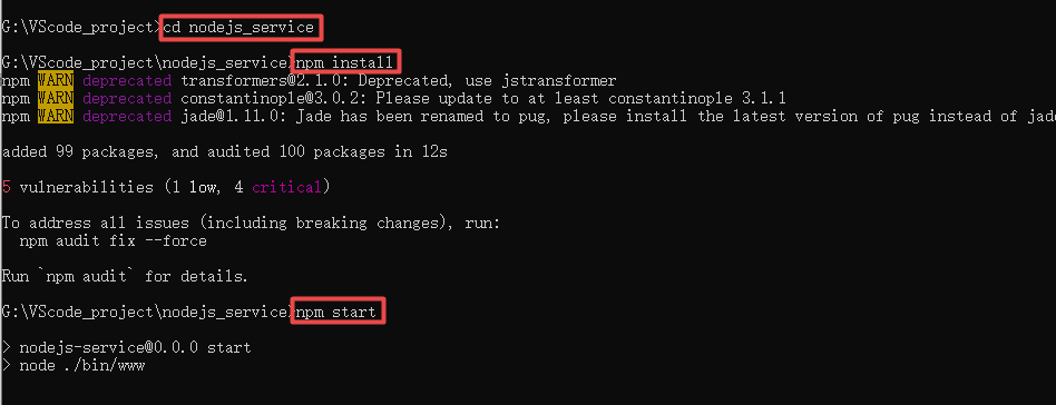 然后输入doc命令:express nodejs_service (express '你项目的名称')