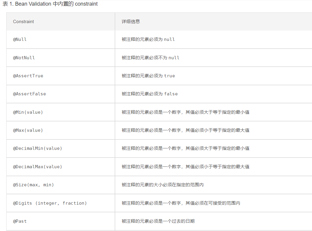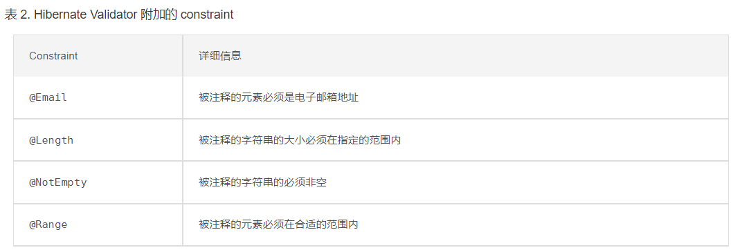 3、Hibernate Validator 是 Bean Validation 的参考实现 . Hibernate Validator 提供了 JSR 303 规范中所有内置 constraint 的实现,除此之外还有一些附加的 constraint。