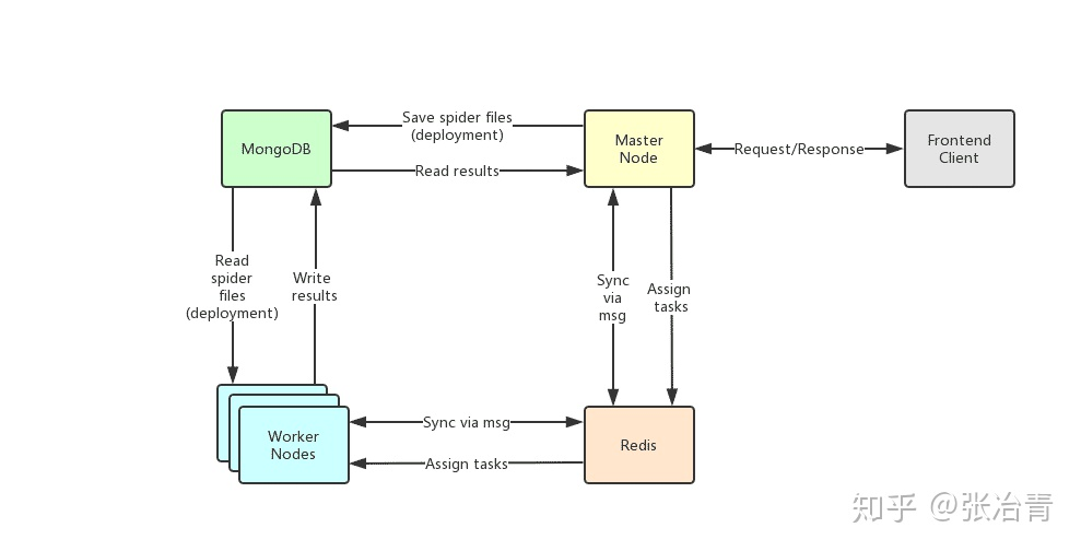 以下是 Crawlab 的整体架构图,由五大部分组成: