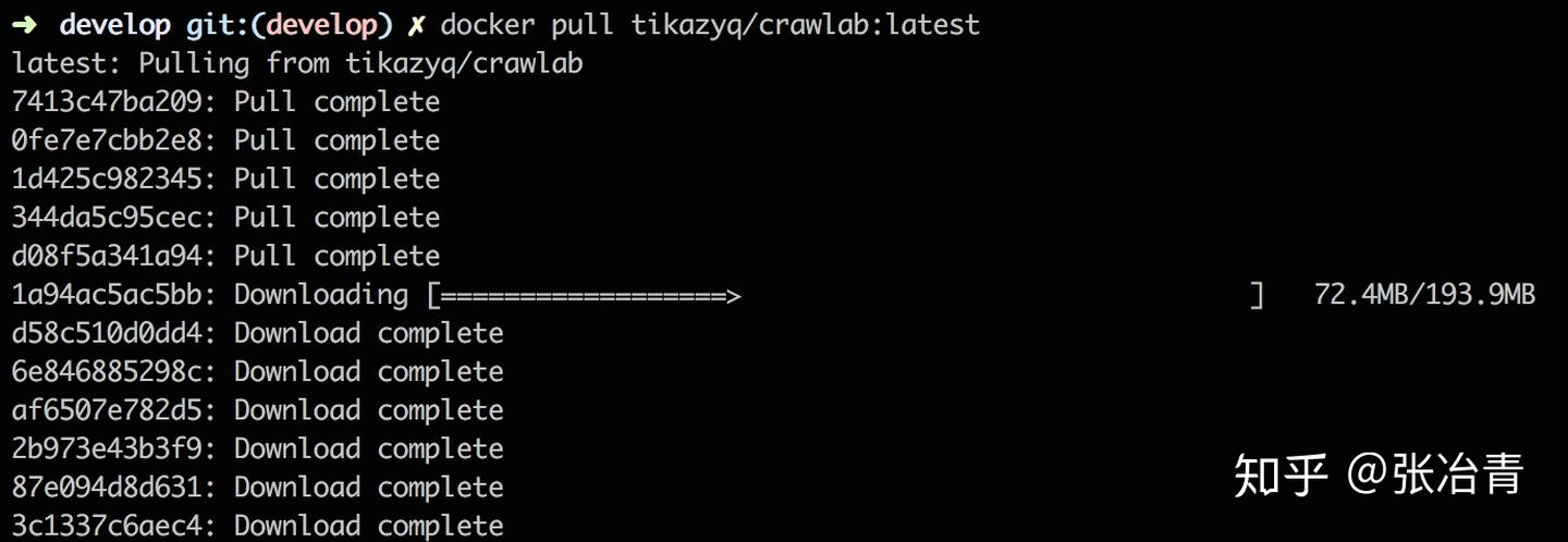 docker pull tikazyq/crawlab:latest下图为拉取镜像时的命令行界面。