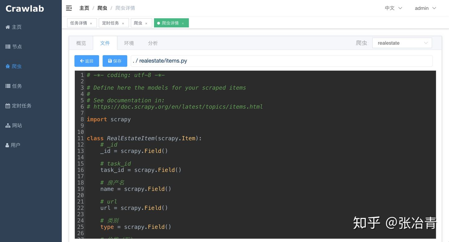 可以在爬虫详情中点击“文件”标签,选择一个文件,可以在文件中编辑代码。