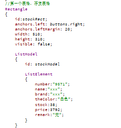 可以看到,这个地方设置了model为stockModel。模式的话,里面可以初始化一些行,比如这样
