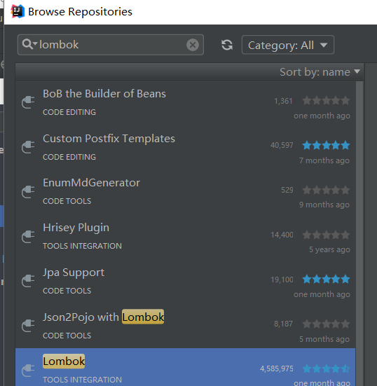 3.搜索lombok,安装即可