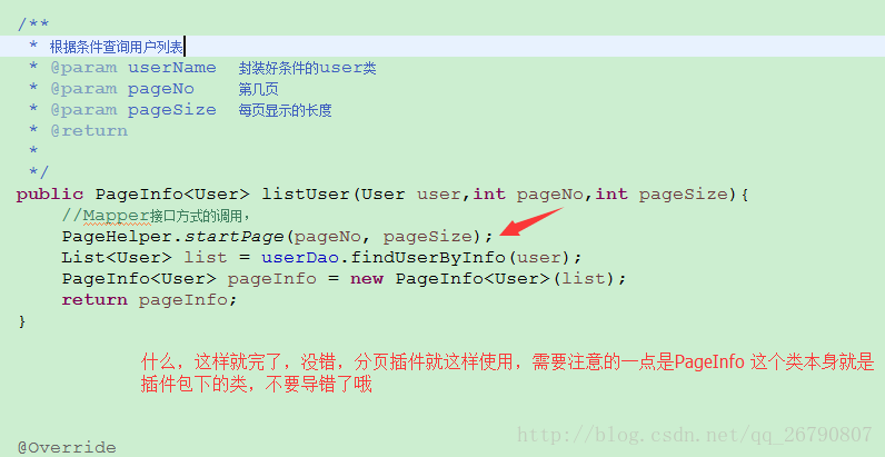 b)在service层调用接口,实现分页。
