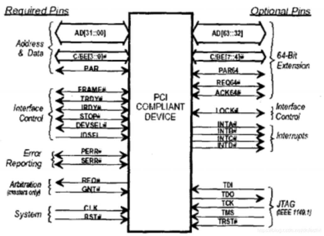 AD[63..32]:扩展的32位地址和数据复用线。再地址期(如果使用了DAC命令且REQ64#有效时)这32条线上含有64位地址的高32位,否则,它们时保留的;在数据期,当REQ64#和ACK64#同时有效时,这32条线上含有高32位数据。