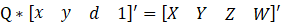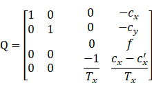 目标点在以左摄像头光心为原点的世界坐标系中的坐标为(X,Y,Z),则存在所示的变换矩阵Q,使