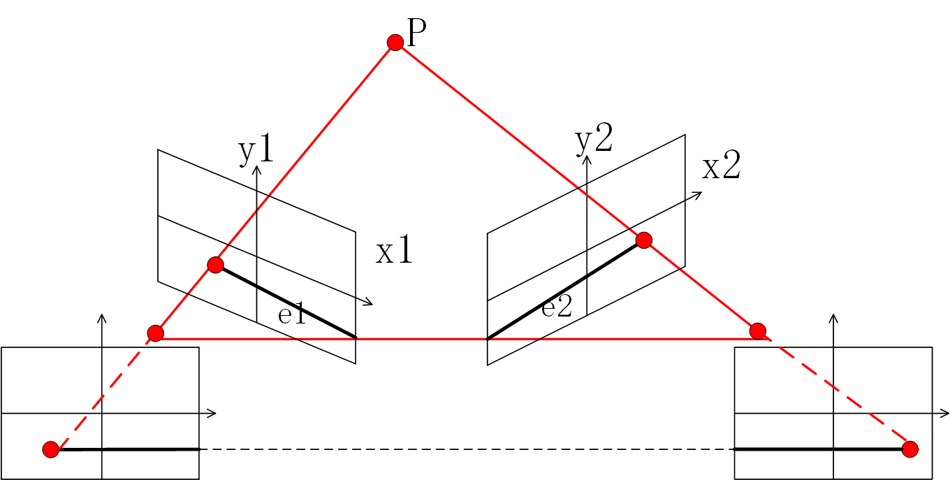 然而,在二维空间上匹配对应点是非常耗时的,为了减少匹配搜索范围,我们可以利用极线约束使得对应点的匹配由二维搜索降为一维搜索。