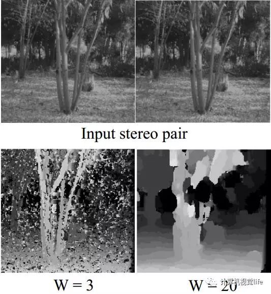 小尺寸的窗口:精度更高、细节更丰富;但是对噪声特别敏感。大尺寸的窗口:精度不高、细节不够;但是对噪声比较鲁棒