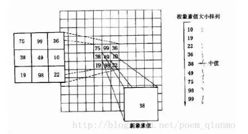 中值滤波是一种典型的非线性滤波技术,其基本思想是用像素点邻域灰度值的中值来代替该像素点的灰度值,该方法在去除脉冲噪声、椒盐噪声的同时又能保留图像的边缘细节。