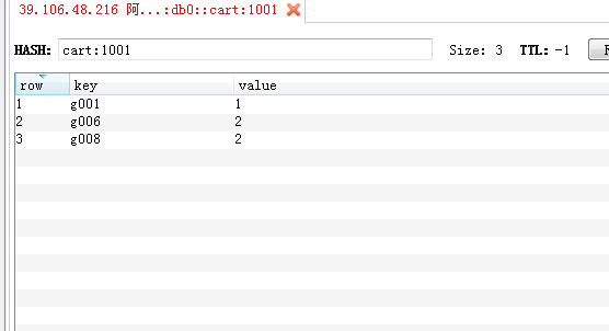 获取所有商品 hgetall cart:1001