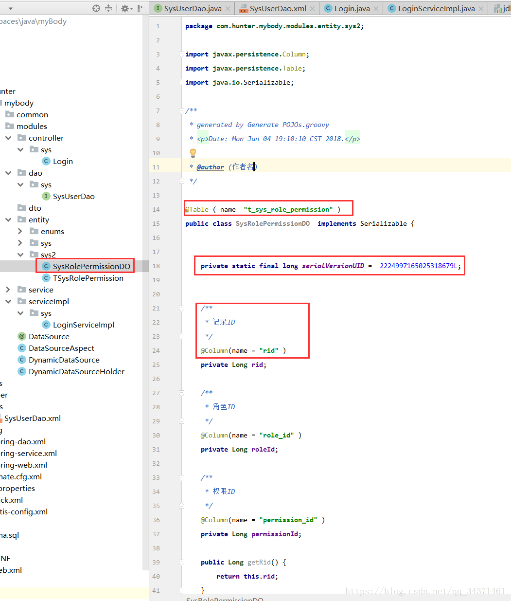 表明去除了“_”然后以驼峰方式生成了类名,而且开始的package 路径也不对,重点是没有注释,没有注释,没有注释!
