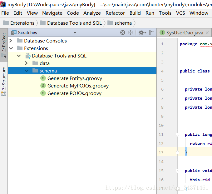 进来只有Generate POJOs.groovy,右键新建另外一个比如我的叫做:Generate MyPOJOs.groovy,里面内容如下: