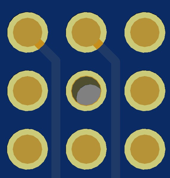 虽然这种方式的优点很多,但是大部分情况下设计者还是会尽量采用第一种操作方法,主要的原因是在焊盘上打孔有可能会影响焊接质量,也会影响焊盘的机械强度。