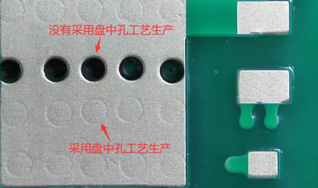 注:上图是用0.7mm的孔做的盘中孔生产工艺,这才有了少许的印记,不然表现不出盘中孔。