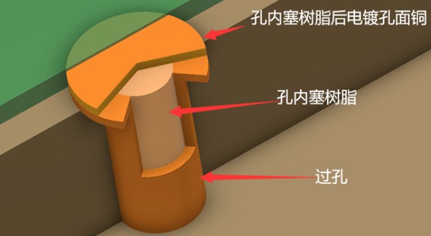 什么意思呢,就是说先用树脂把过孔填充起来,烤干树脂磨平,然后在树脂表面镀上铜,这样外观看上去就完全看不出有过孔的痕迹了,自然也就不会影响到焊接了。因为这种方式是在焊盘中打了个孔,所以也称为嘉立创盘中孔工艺。