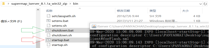 二、然后双击红色剪头文件启动iserver服务,需要关闭时再双击绿色箭头文件。
