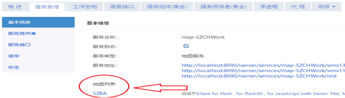 Map对象url地址:在服务管理列点击相应地图再点击地图列表下面的地图名称获取地址