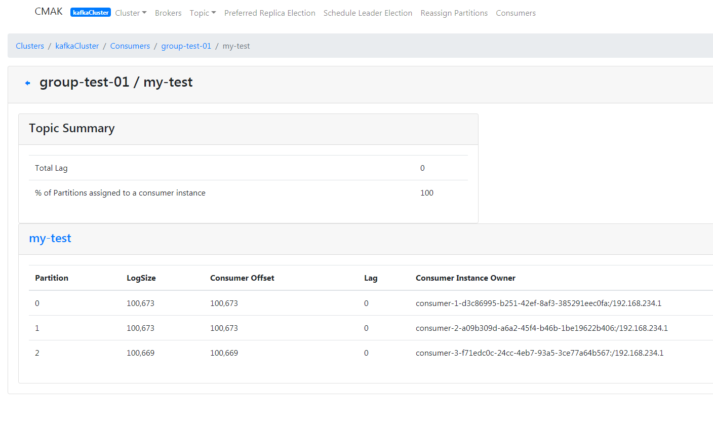 可以看到Consumer消费的汇总情况: