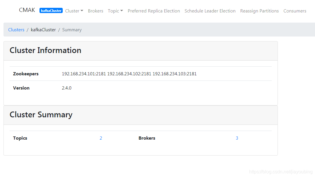 可以看到Topics和Brokers信息