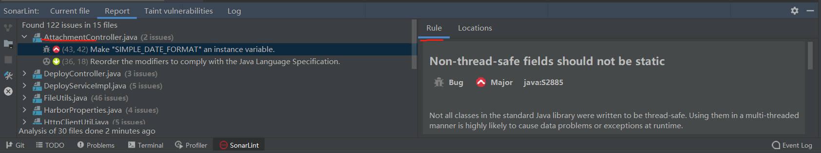 执行之后可以看到如下信息,如果代码中有不合理的地方会在report中显示。