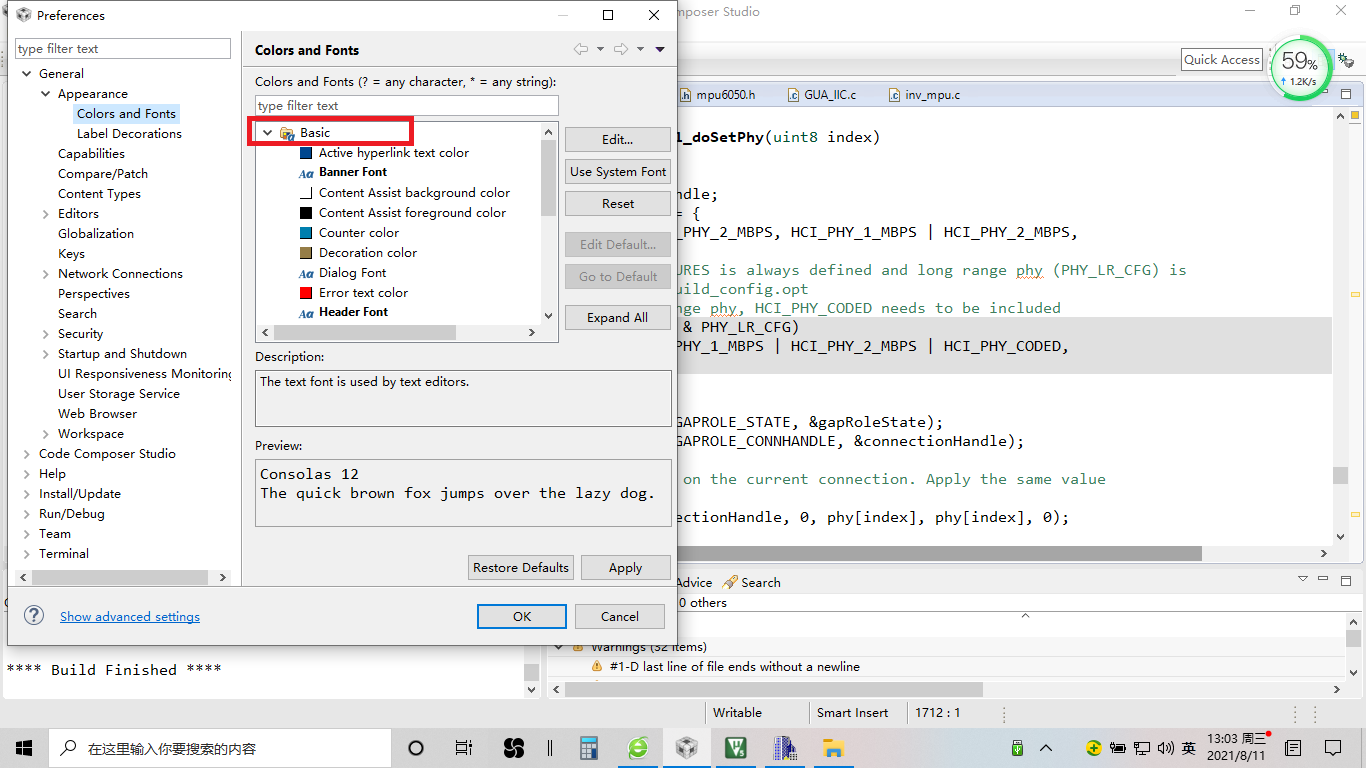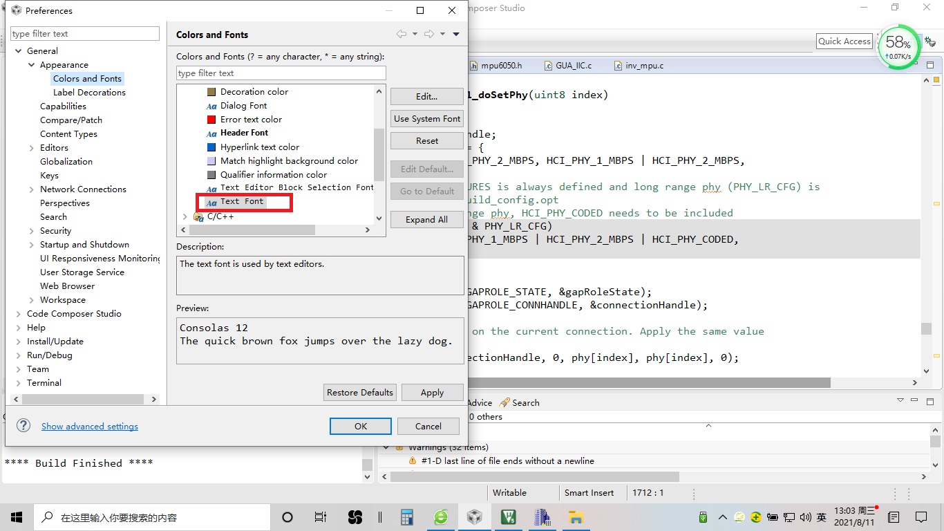 2、在General里面的Appearance选择colors and fonts,如下图:
