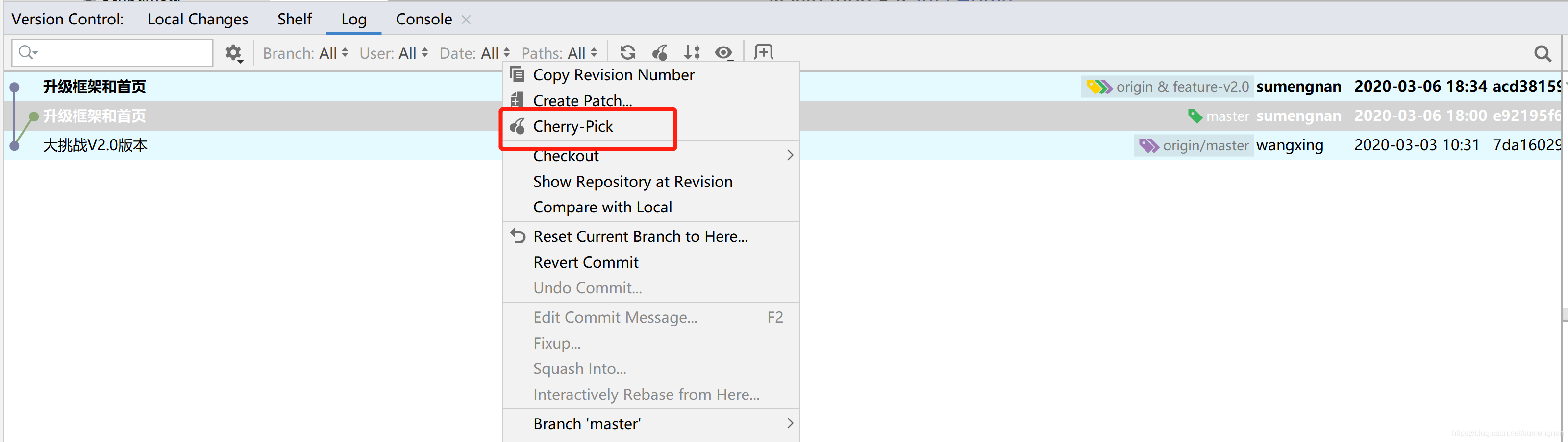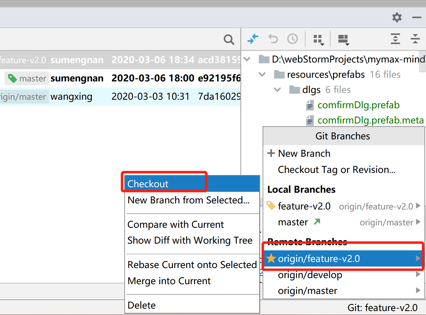 2、切换分支途中可能会有冲突,一定把冲突文件提交或搁置起来,否则下面一步报错