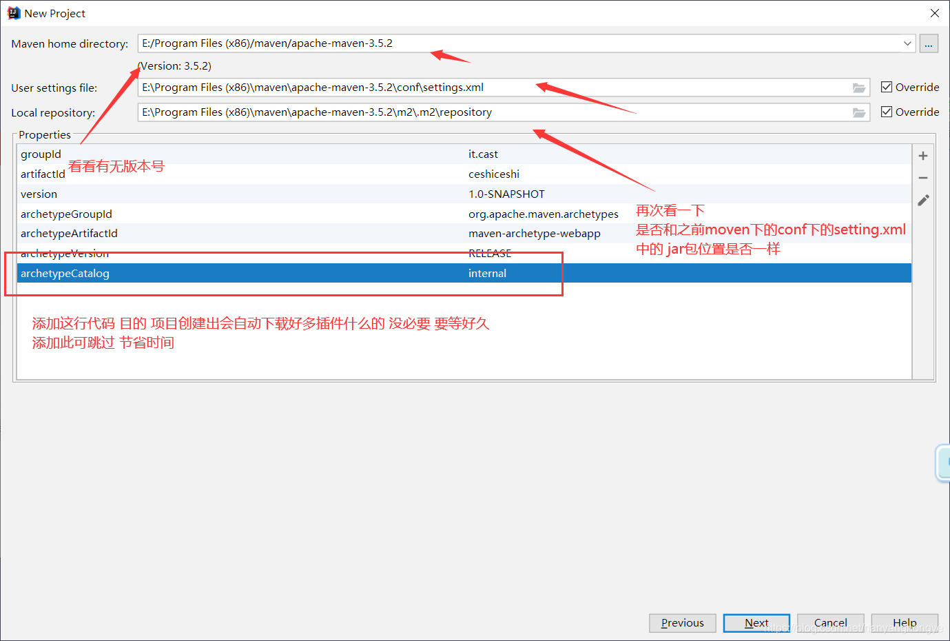 archetypeCatalog 原型目录 internal 内部 目的:节省创建项目所用时间(个人习惯 可加可不加)