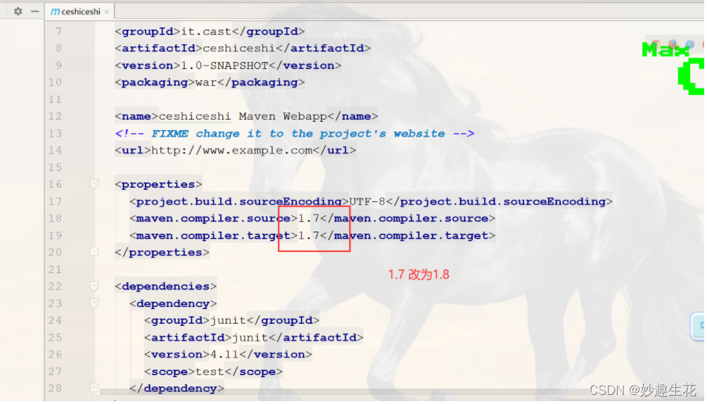 找到项目的.pom文件 1.1.7变1.8