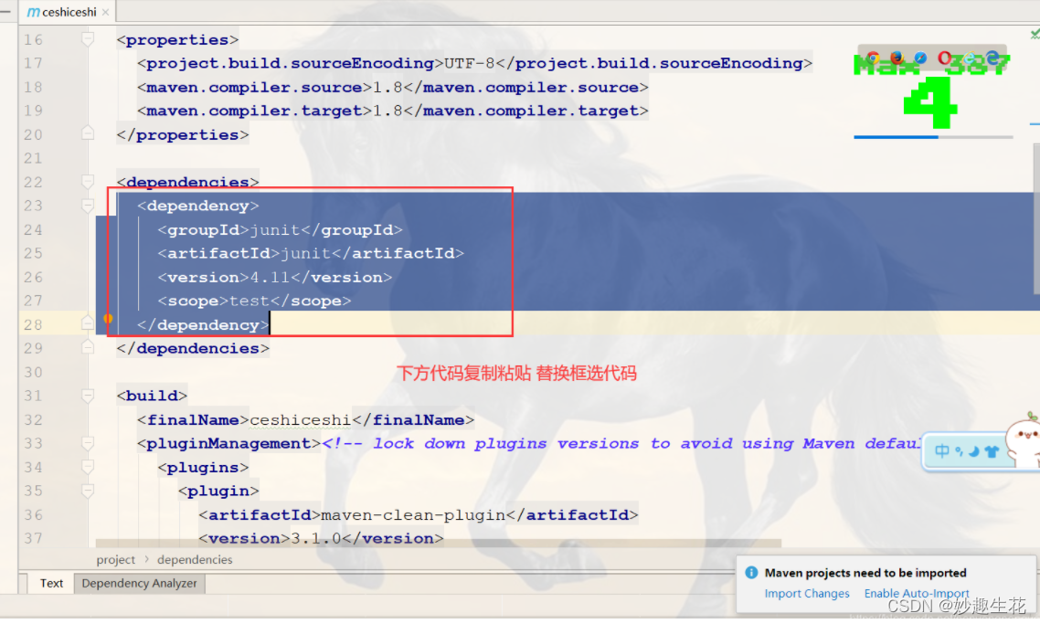 <dependencies></dependencies>标签中代码 全部替换为下方代码